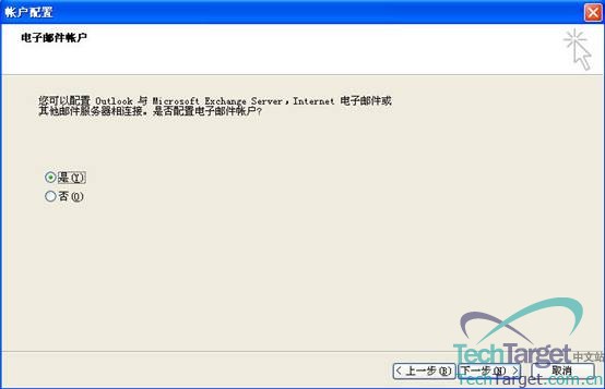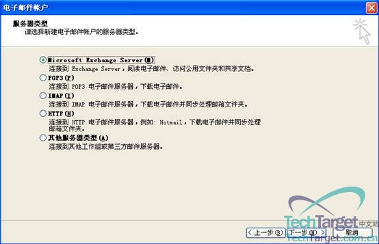 选第一项“Microsoft Exchange Server”,然后点“下一步”: