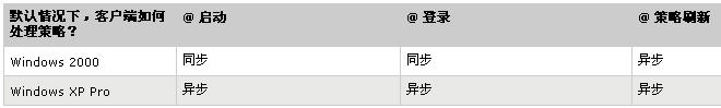 在默认情况下,Windows XP 在启动和登录时,不会等待网络完成初始化。任何现有的用户在登录时,都使用了缓存凭据,从而实现了更短的登录时间。由于计算机不会等待网络完全启动,因此一旦网络可用,就将在后台(异步地)应用组策略。下方“表 1”对比了 Windows 2000 和 Windows XP Professional 处理策略的具体方式。