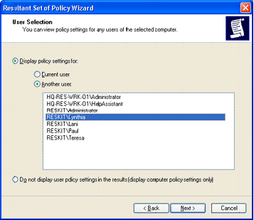 7.当出现“用户选择”页面时,可以选择所要查看其策略设置的用户。(在本例中,管理员选择了用户 Cynthia,如下方“图 5”所示。)单击“下一步”。