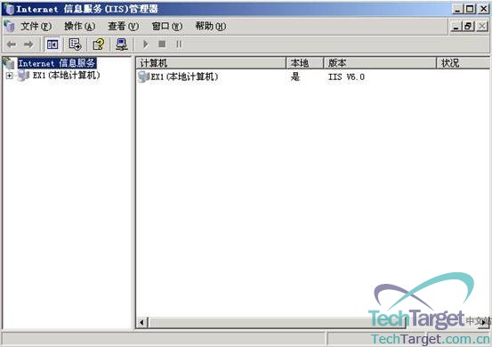 我们选转到服务器EX1上,点击“开始—设置—控制面板—管理工具—Intelnet 信息服务(IIS)管理器”: