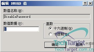 默认情况下这个键值是“1”,我们现在要修改它为“0”:
