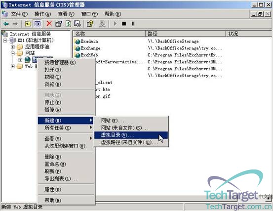 然后如上图所示,选择“新建—虚拟目录”: