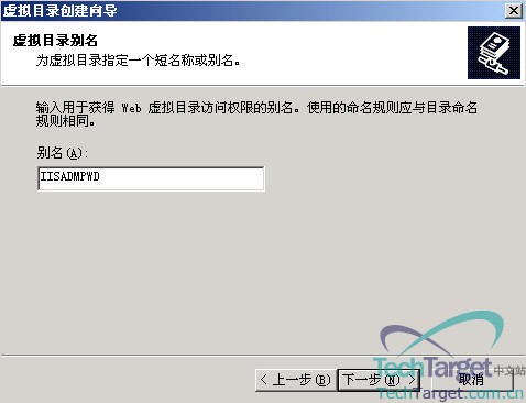 在别名处输入:“IISADMPWD”,然后再点“下一步”: