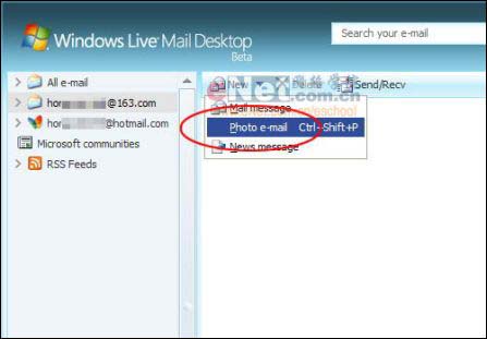在随后的摸索中,笔者发现WLMD还支持一种新颖的Photo e-mail邮件格式。点击建立新邮件后面的下拉列表后就能看到这个选项,如图11所示。