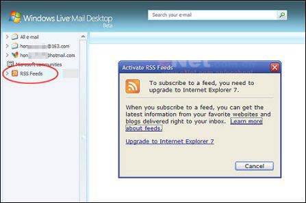 除此之外,WLMD还集成了一个RSS浏览器,可以很方便地订阅各种RSS信息。只不过,这项功能是配合IE 7使用的,由于笔者的电脑前两天刚刚被微软“判定”为盗版,所以在这里也就没办法再给大家做更详细的演示了,呵呵。如图14所示。
