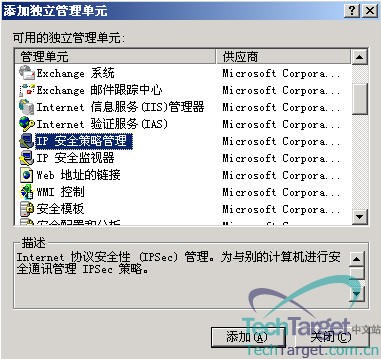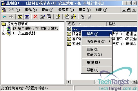 接下去,我们转到后端服务器,也就是EX1上,用同样的方法把“IP安全策略管理”添加到MMC控制台,在“客户端(仅响应)”上击右键: