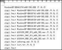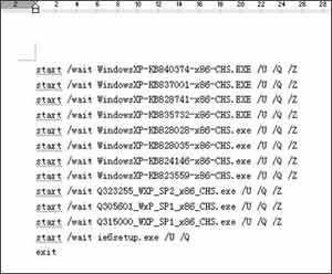 第七步:保存图3所示的内容,然后将“list.txt”文件的扩展名改为“bat”即可制作了安装补丁程序的批处理程序。