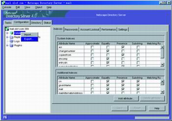 其缺省存放路径为 /opt/netscape/server4/slapd-mail/ldif,网络管理员可根据实际情况自己定义存放路径,本示例所生成的ldif文件存放在/mail/ldif目录下。
