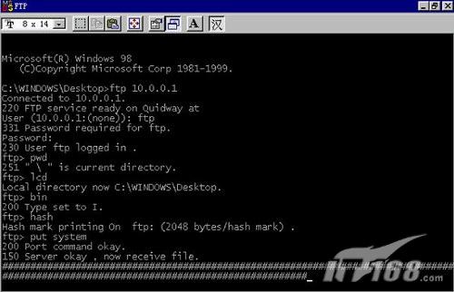 第四步:在网络中任何一台计算机访问防火墙建立的FTP服务器,然后通过get system来将1000F的VRP下载到该计算机硬盘完成VRP的备份工作,或者通过put system命令把本地的VRP文件上传到1000F防火墙中完成恢复工作(图2)。
