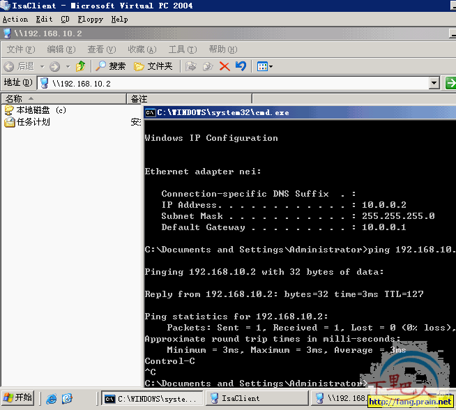 9、下面几图,就是说明的如何在远程客户端访问VPN服务器内部局域网10.0.0.2这台机器共享文件夹的情况。