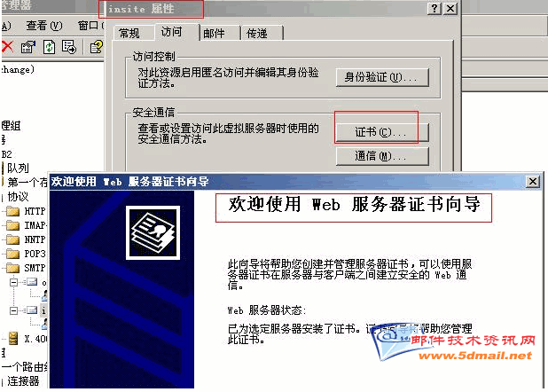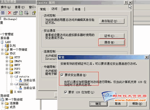 证书服务器安装完后,到EXCHANGE系统管理器.insite的虚拟服务器上设置安全通信.