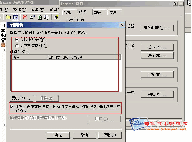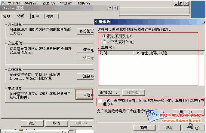 中继为默认配置.(以下列表为空,仅通过身份验证的计算机可以中继)