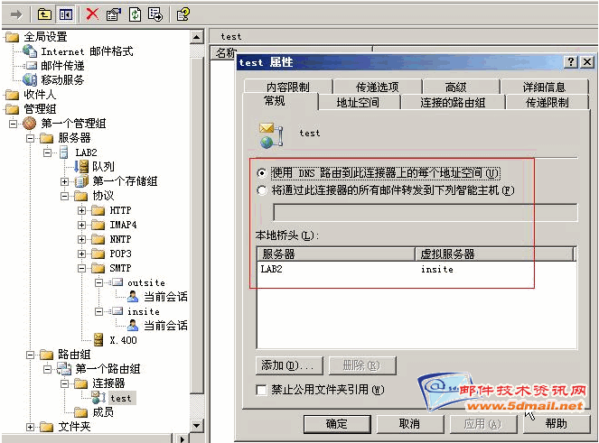 通过看队列,能清楚用了SMTP连接器,以及把instie作为桥头发送的情况.