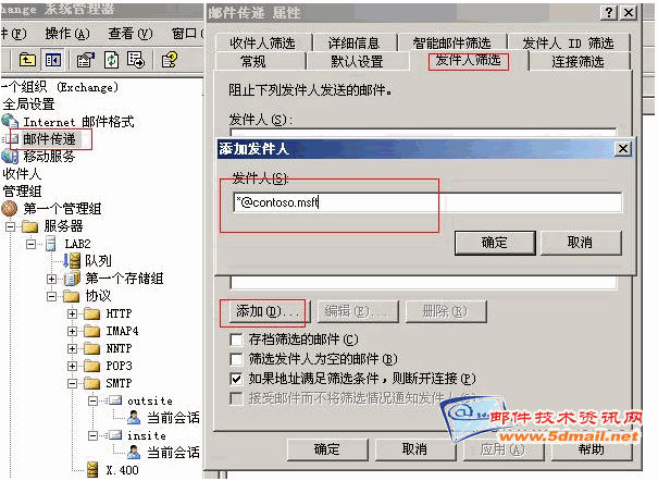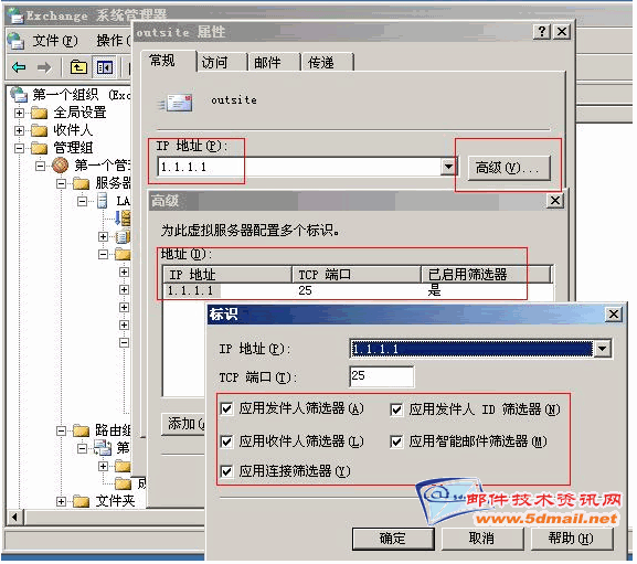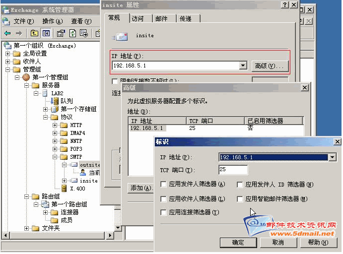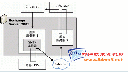 这里说的是2个SMTP虚拟服务器的安全配置.这也是一种常见的部署方案.