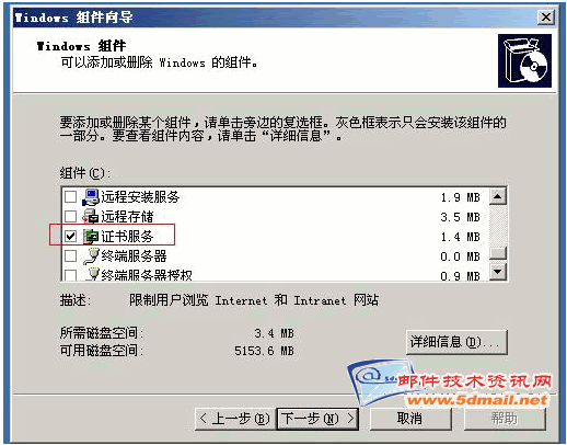 因本机为DC,又在DC上安装了EXCHANGE,EXCHANGE要求SSL.还需安全证书服务.