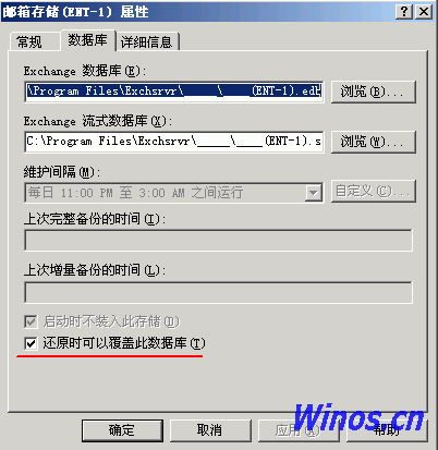 Ex2003新增加了恢复组,恢复组的作用等于是一个中间周转的容器,这样就可以把备份的邮件还原到恢复组中,然后把恢复组的邮件和常规组的邮件合并,这样既可以找回被误删除的以前的邮件,又保留了最近的邮件。