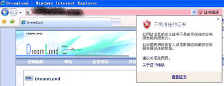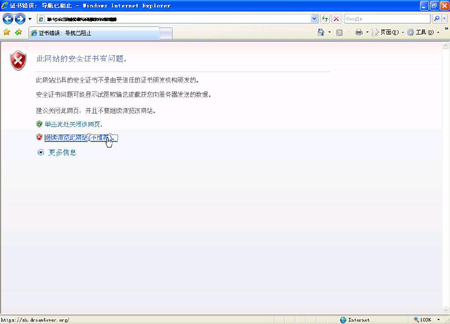 现象:当浏览一个显示包含错误的安全证书的HTTPS站点时,显示一个错误页面。