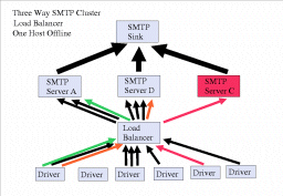 在最近几年,越来越多地使用了外部的工作负载导向器。这些专用设备可以在几个服务器之间巧妙地分配工作负载,以及处理故障转移/故障恢复。我们对 Alteon 180 交换机进行了大量测试。它允许我们创建虚拟邮件服务器。到达此虚拟服务器的邮件被循环传送到这三个真正的服务器中的每一个。如果其中一个 Sendmail 服务器由于某种原因发生故障,Alteon 将停止发送新连接到该服务器(定期检查该服务器是否已恢复)。