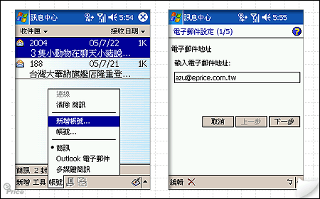 由于Windows Mobile操作系统的电子邮件设定方式与PC相似,使用者如果不清楚该如何设定各个选项,建议可以直接参照计算机端上的设定!