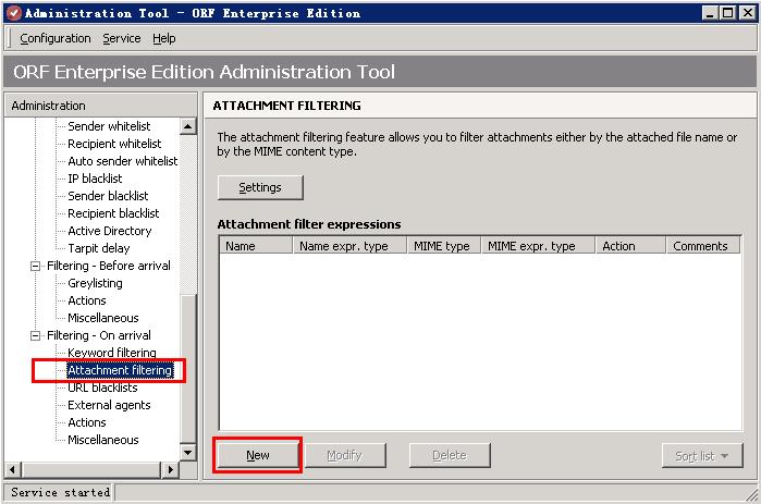 (2)在Attachment filtering, 点击"New"添加一个新的附件过滤表达式