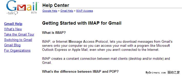 对于喜欢使用客户端程序来管理信件的用户来说,这是一个好消息:Gmail加入了IMAP支持。虽然大多数人的页面还找不到打开IMAP的选项,但是Google的帮助中心却无疑暴露了这次升级。