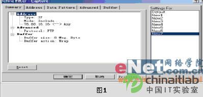2、定义过滤器。在FTP客户端上运行Sniffer软件,进入系统,点“Monitor”-“Matrixa”,选中本机,点鼠标右健,选择 “Define Filter…”,在“Define Filter…”窗口,点“Advanced”,选择IP->TCP->FTP,点“确定”,即已定义好过滤器,如图1所示。