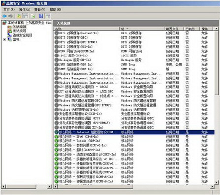 图7、Windows 2008 Server高级防火墙默认入站规则