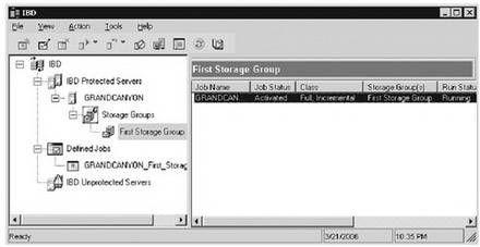 5. 备份 job 将被自动进行。例如,下图所示的 GrandCanyon Exchange server, job 的状态为’Running’。