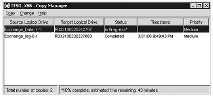 从下图可以知道 Exchange_Data 和 Exchange_Log 卷正在自动进行FlashCopy。