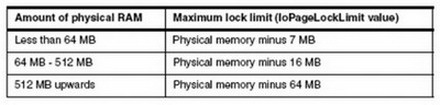 默认状态下,Windows给I/O锁操作设定的内存限制为512KB,随着内存的增加,这个值可以做相应增加,如表6.