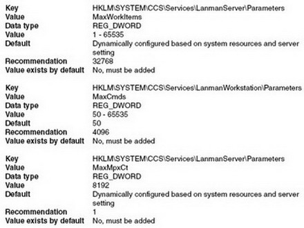 避免使用NET SERVER CONFIG命令 上面几个命令在LanmanServer\parameters生成了几个需要的键值,也生成了一些其他的无关键值,这些键值的静态设置将禁用某些Windows自我调优功能,这个结果并不是所希望的,应当避免。 例如,管理员要在网络浏览列表中隐藏Windows计算机,运行以下命令: