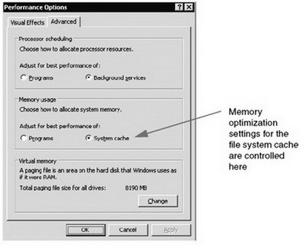 这是默认设置,它对内存定位给予了比应用程序更高的优先级,适用于不运行其他程序的文件服务器环境。它需要充足的物理内存,因为更多的物理内存被分配给了文件系统缓存而不是应用程序。
