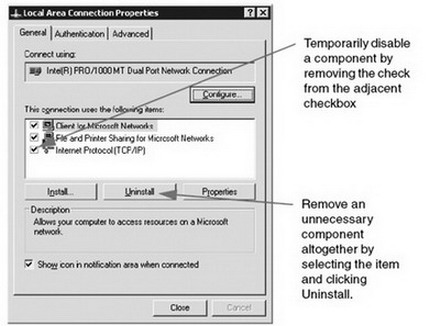 不必要的网络客户端、服务和协议会占用系统资源,额外的协议还会增加网络流量负载,删除这些服务和协议可以释放资源,提升系统性能。