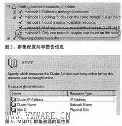 如果您为群集配置了Microsoft SOL服务器,您知道MSDTC是其中非常重要的组件,它依赖于一些其它的资源。图4是MSDTC(群集资源的属性页,在这里您可以看见它依赖哪些资源。但是,在Exchanqe中,您可以在这里配置MSDTC依赖于群集的lP地址、群集名和仲裁磁盘。解释为什么可以这样做的原因超出了本篇文章的范围,但是在微软Exchange团队的官方博客文章中,您可以看到关于MSDTC资源和Exchange的深层次的解释(http://msexchangeteam.com/archive/2005/01/1/354497.aspx)。
