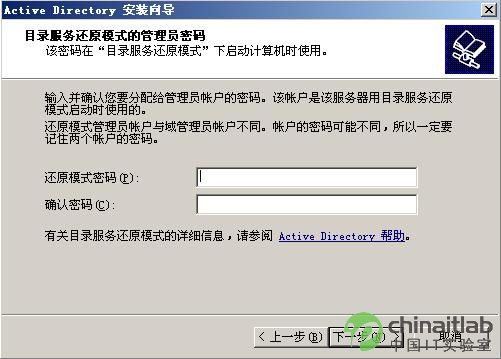 12.AD在进入目录服务还原模式时使用的管理员密码。注意与现在的管理员密码概念区分。此密码只适用于目录服务还原模式。此模式在大家平时选择进入安全模式的菜单下可以找到。