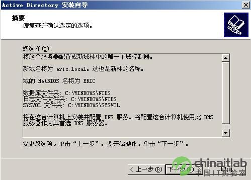 13.你所创建的域环境摘要,说穿就是你前面的设置信息。