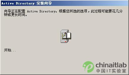 14.在上面的图示中点击下一步就开始部署AD了!需要一点时间,大概5分钟就可以了。休息一下眼睛。在这里之前如果大家没有填写TCP/IP的信息,会在安装过程中叫你填写TCP/IP信息。
