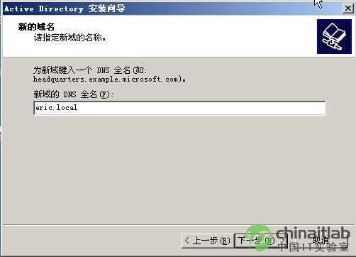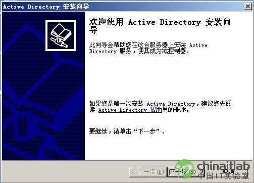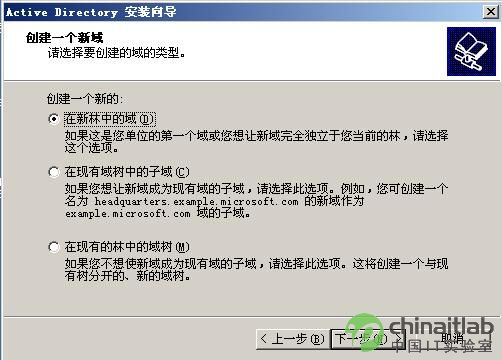 5.创建一个新域。各项的说明图中已经给出,我们这里选第一项"在新林中的域",因为本文的环境为安装第一个域。