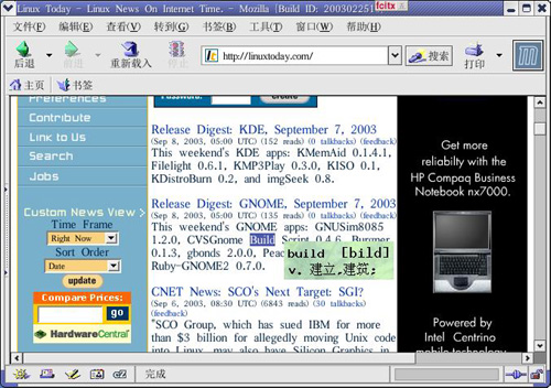 Linux下一样有类似金山词霸这样的字典,比如说星际译王,它也可以实现屏幕取词,可以通过google.com可以找到这个软件的最新版本。下图就是它的屏幕取词的效果: