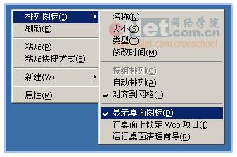 2、就是桌面上什么图标也没有其中也包括IE图标:在桌面空白处上单击鼠标右键→在弹出的菜单中选→排列图标→显示桌面图标。(见图)