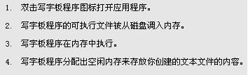 为了揭开这个疑惑?让我们先来考察一下写字板应用程序的工作原理,以便认识计算机物理内存的用处,假设用户需要利用写字板程序来创建一个新的文本文件: