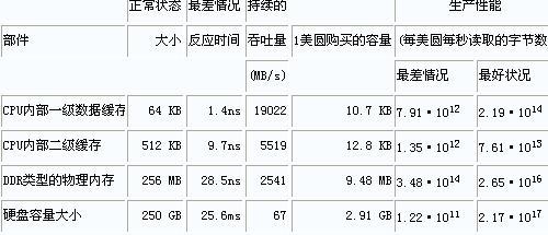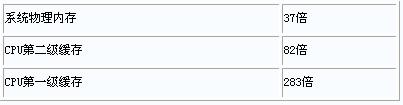 2006年1月份,工程师Diomidis Spinellis在普通办公电脑上总结出了缓存性能比例的一张参考表: