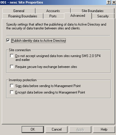 3)点击“Advanced”,确认勾选“publish identity data to Active Directory”
