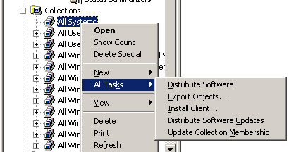 1)右击Collection或者特定的机器,点击“All Tasks > Install Client”