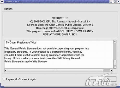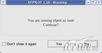 打开一个终端运行命令:“xfprot”即可启动程序,说明如果您使用root权限运行这个命令首先会出现安全警告如图4 。