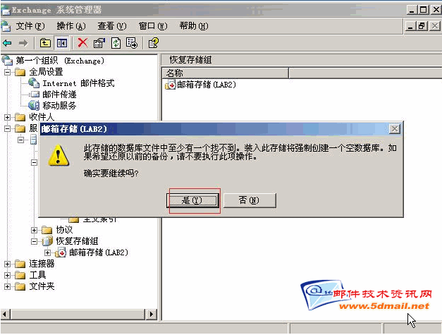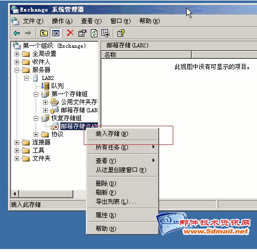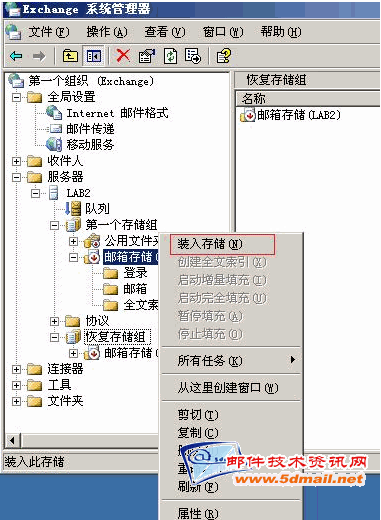 在恢复之前我们可以先装载邮箱存储。也可以在我们之前移走数据库文件之后装载数据库。