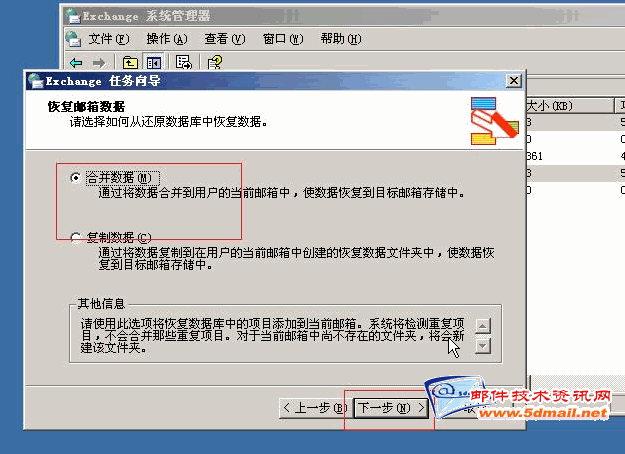 我们先把邮件合并到邮箱存储。(打了SP2补丁才可有的功能)