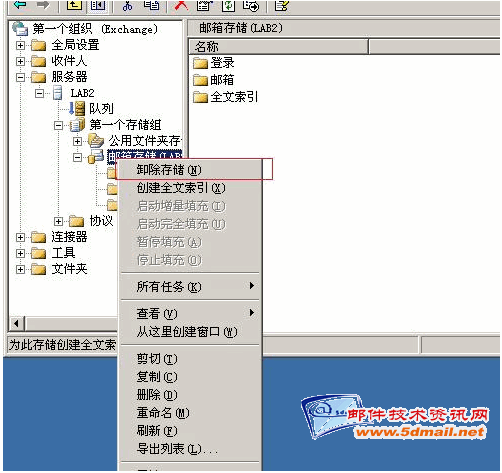 接下来,准备工作都做完了,我们来模拟数据库损坏.我的做法是(把数据文件移走),移走前要先卸载邮箱存储,公用文件夹存储.