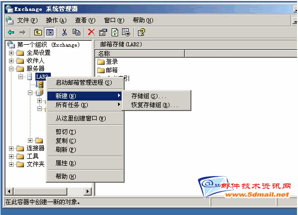 用恢复存储组还原,那么我们先新建恢复存储组。