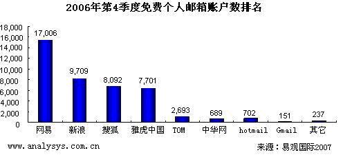06Q4中国免费电子邮件市场达2820万